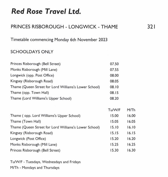 Red Rose Travel. In Princes Risborough the route will serve the Railway Station
