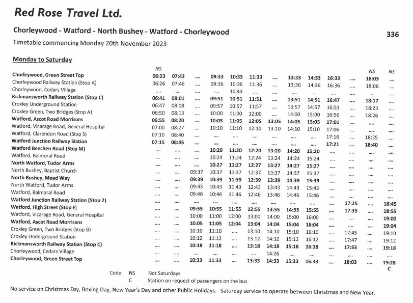 Service 385A withdrawn from 20th November 2023 and replaces with Service 336 from North Bushey to Chorleywood Via Watford, Croxley Green & Rickmansworth
