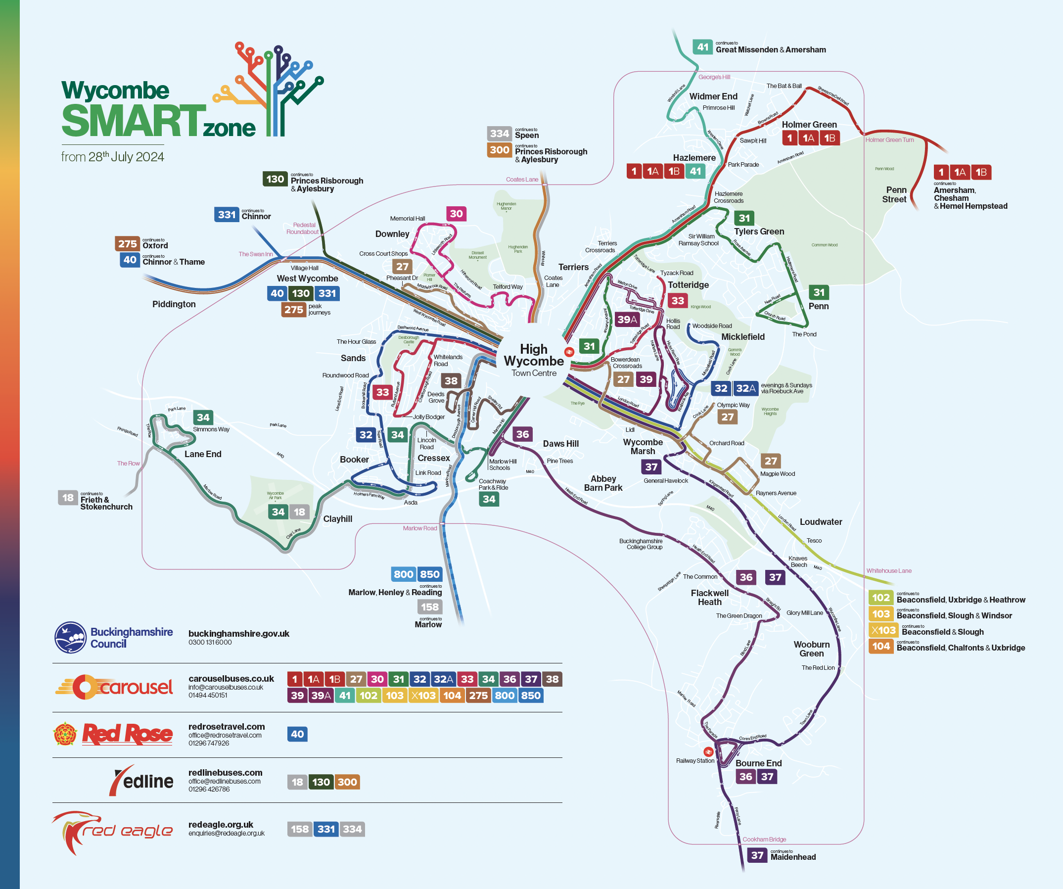 The Wycombe SMARTzone map highlights all the routes you can travel on in High Wycombe.